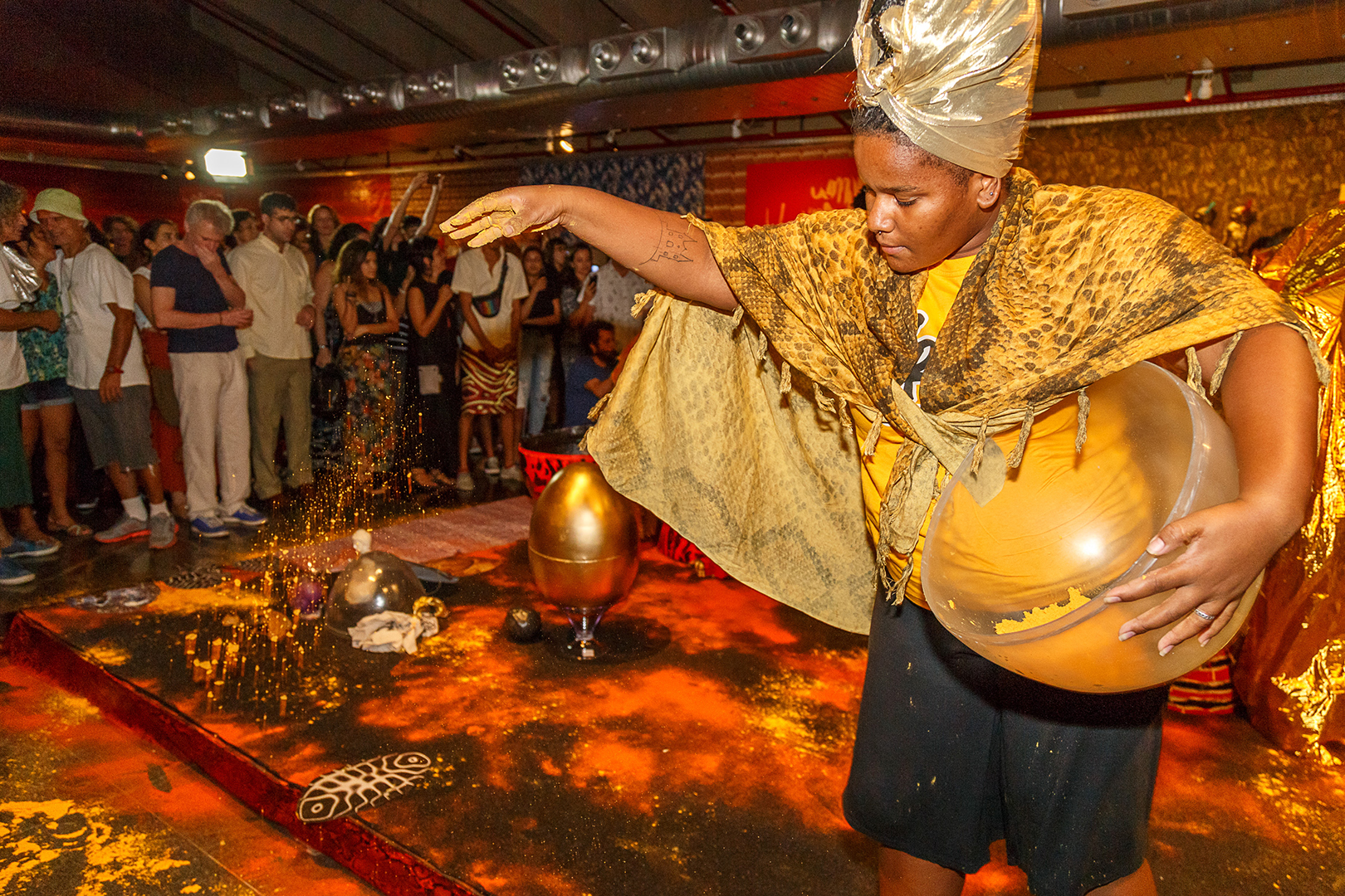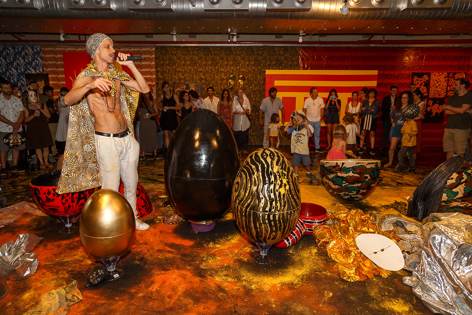 A mostra apresentou um conjunto de instalações, vídeos, esculturas, pinturas, música e performances, com forte caráter político e experimental. O público pôde interagir com obras-ação, como os “ovos-bomba”, além de presenciar a performance de estreia da música “Luz com Trevas”, com participação de artistas, músicos e performers convidados.