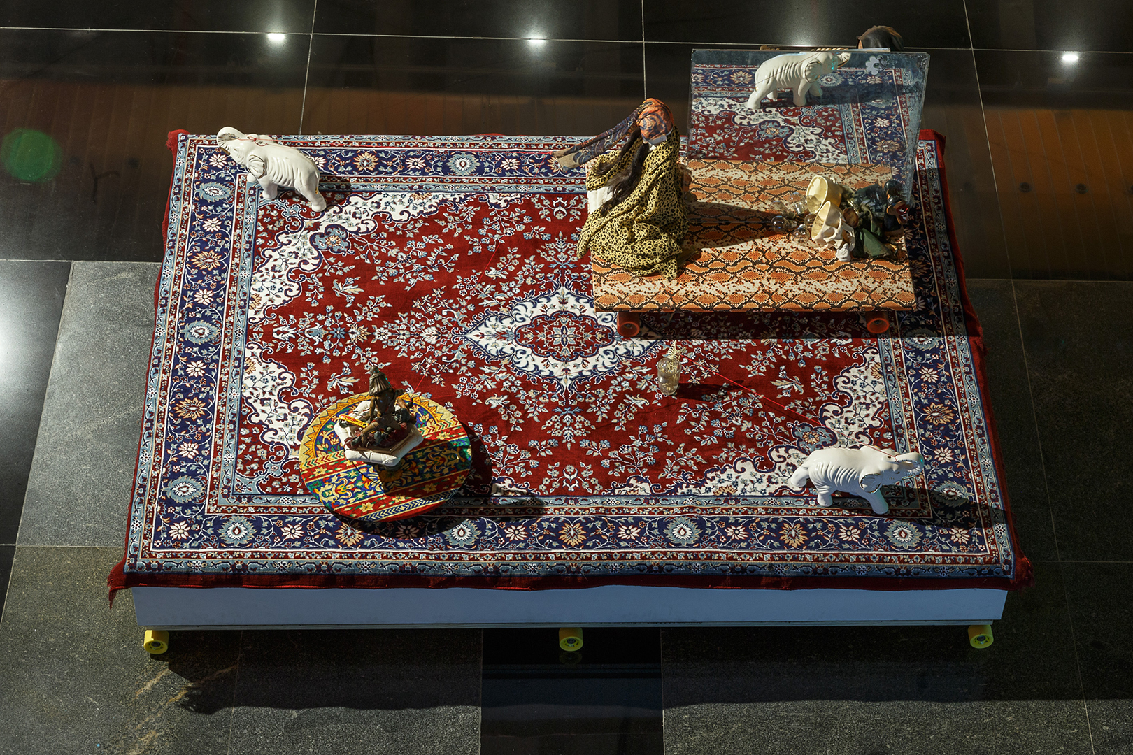 Além de produzir todas as obras apresentadas, acompanhei as visitas da curadora ao ateliê, participei ativamente das decisões curatoriais e expográficas, e propus soluções para o diálogo entre as obras e o espaço expositivo.